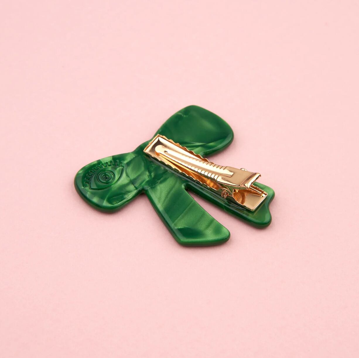 【Coucou Suzette Festive season collection - Green Ribbon hair clip-】