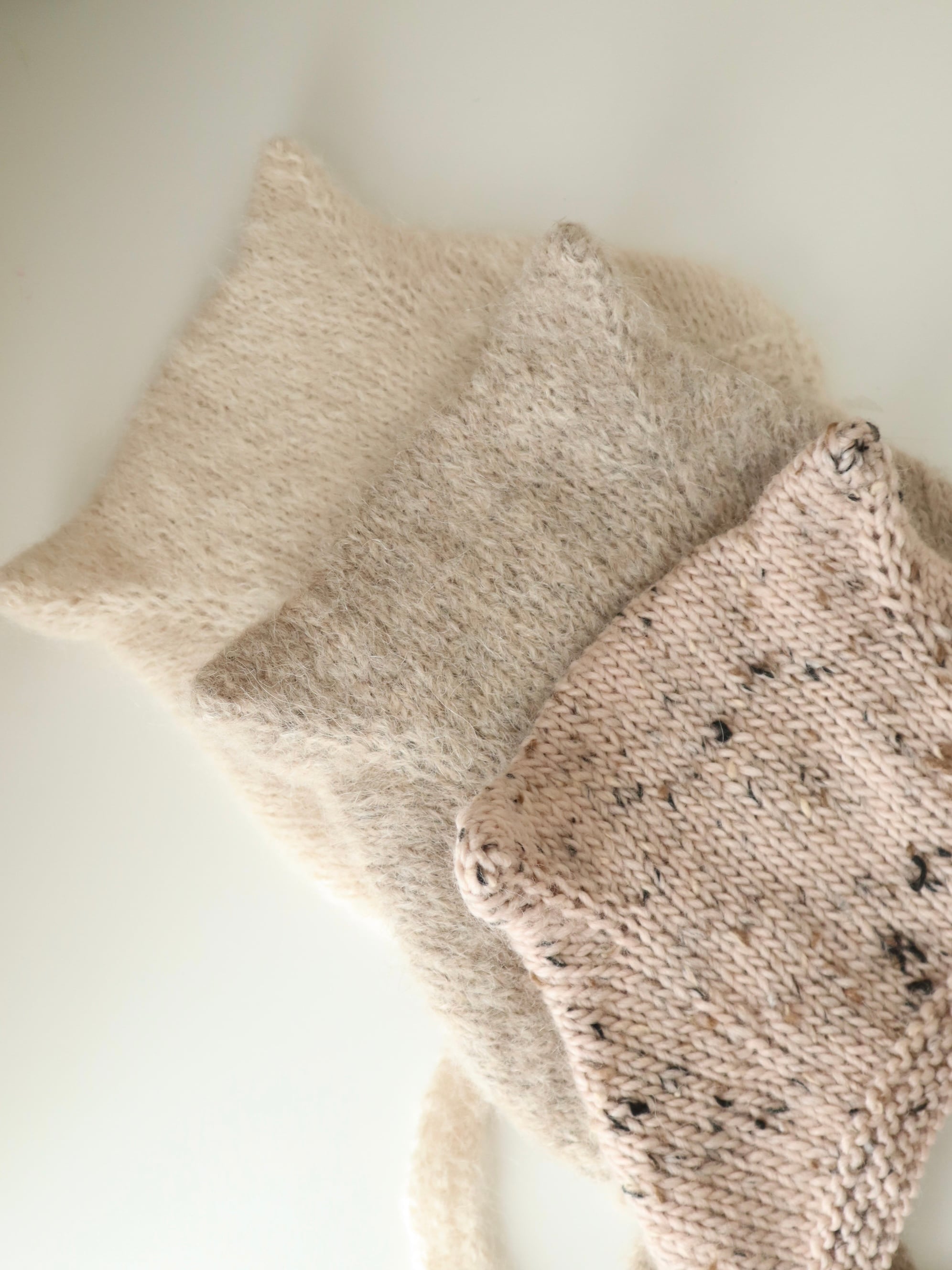 一つ一つ手編みで編まれた温かみのあるボンネット。