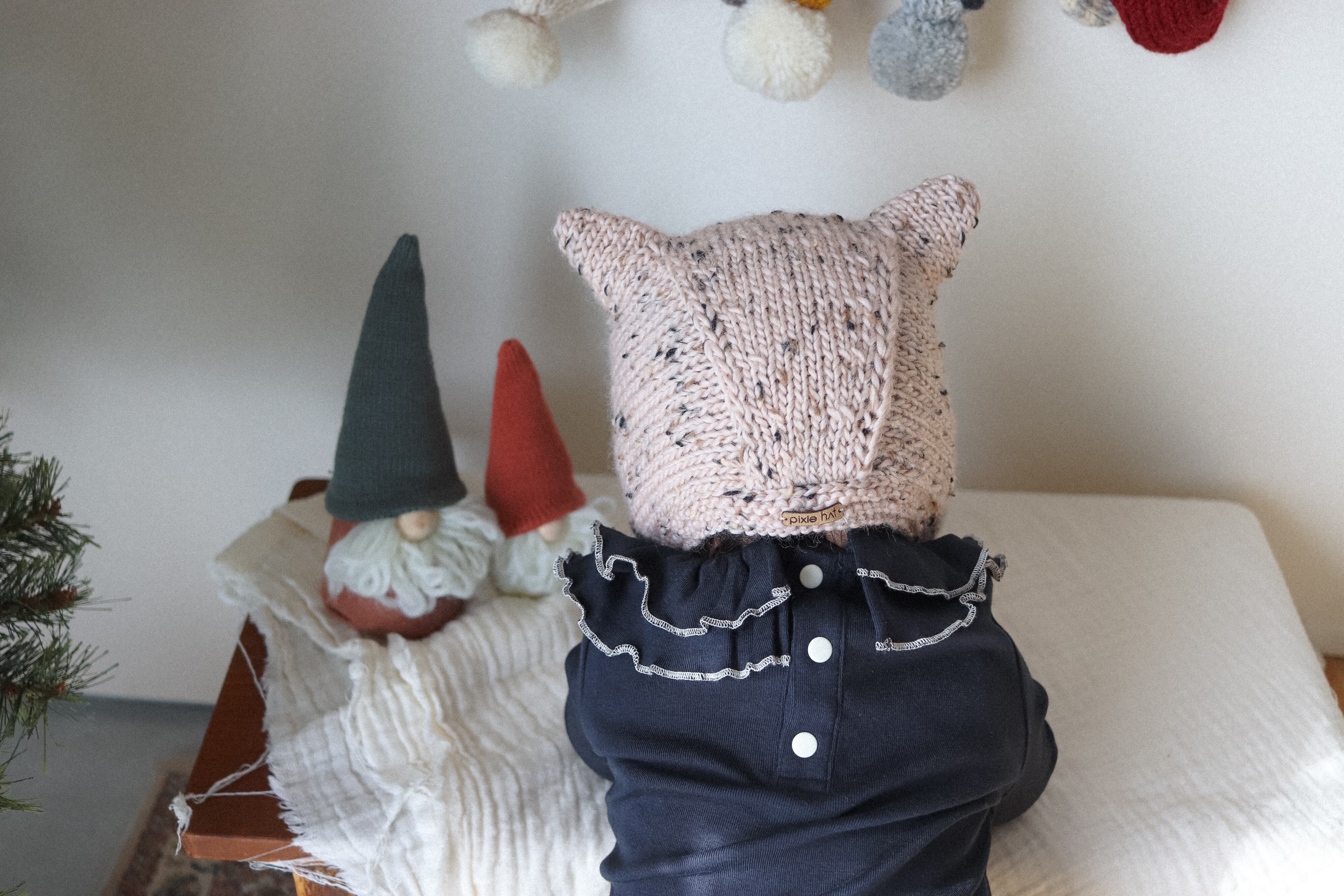 即納【pixie hat ”Kitty bonnet” 】当店限定pink beige confetti 18-24m