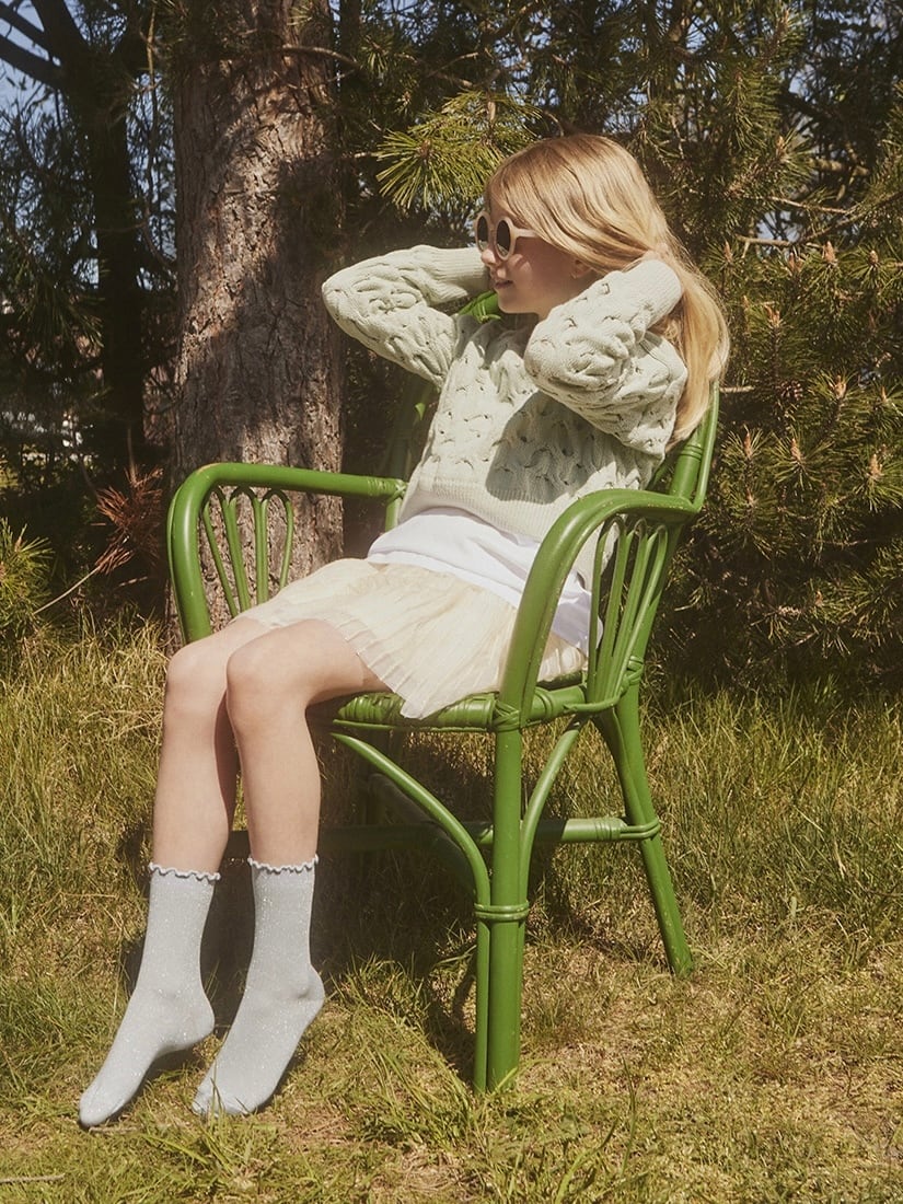 細かなラメにさりげないフリルがついた春夏ぴったりのデザインです。
